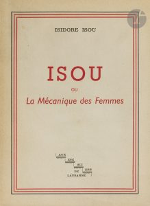ISOU — Isou ou La Mécanique des Femmes. — Aux escaliers de Lausanne, [1949]. — In-8, 193 x 143 : 294 pp., (1 f.), couverture imprimée. — Broché.