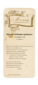 Max Jacob rédigea ce menu fantaisiste dans lequel beaucoup d'œuvres du poète sont évoquées.