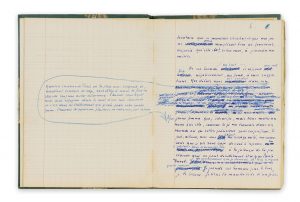 Les cahiers 2, 3 et 4 sont, eux, rédigés à l'encre bleue, avec aussi quantité de corrections successives.