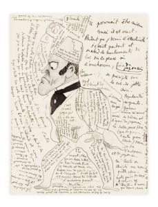 • PERSONNAGE MAROCAIN EN FRAC, sous forme de scénario-calligramme, dans une lettre très amusante du 2 juillet 1922, qui contient aussi un CHIENT PISSANT CONTRE UN MUR.