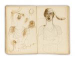 ♦ TRÈS PRÉCIEUX CARNET INÉDIT de 135 feuillets (186 pages sont remplies), comportant environ 42 DESSINS ORIGINAUX AU CRAYON OU A LA PLUME.