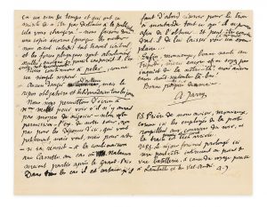 Lettre inédite mentionnée dans les Œuvres complètes, Pléiade, t. III, p. 663 ; note p. 995 et avec un bref résumé inexact et incomplet d'après le n° 425 de catalogue de la vente Le Bodo : "Jarry retourne la traite signée. Il a beaucoup écrit et adressera sa copie qui n'est pas destinée à la publication".