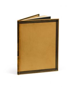 froid sur le dos, large bordure intérieure de veau fauve ornée d'un listel de veau mosaïqué noir, doublure et gardes de papier noir, étui (G. Schroeder).