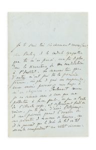 Je te suis très sincèrement reconnaissant, cher Berlioz de la cordiale sympathie que tu m'as prouvé [sic], une fois de plus [...] Le mauvais tour que d'autres m'ont joué dès la première séance, n'a pas de quoi me surprendre [...] Cependant je ne saurai cesser de croire que ma prétention à faire partie, un jour ou l'autre de l'illustre corps, est suffisamment fondée en raison, je te prie d'avoir l'obligeance de me prévenir quand l'occasion de me présenter à nouveau se trouvera, car il se pourrait que le décès de tel ou tel membre correspondant me restât inconnu [...]. Il termine en le priant de remercier Halévy [le compositeur, qui avait voté pour lui] de sa bienveillance à [son] égard.