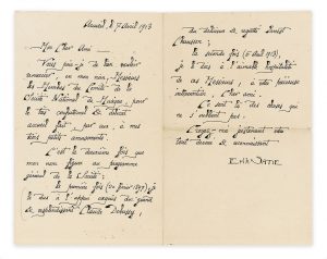 Il prie Samazeuilh de remercier en son nom Messieurs les Membres du Comité de la Société National [sic] de Musique, pour le très confraternel & délicat accueil fait, par eux, à mes trois petits amusements.