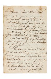 Cette lettre date d'une période pénible de la vie du peintre. En 1855, Jongkind, déprimé, avait quitté Paris pour revenir en Hollande, où, jusqu'en 1860, il mènera une existence extrêmement solitaire. Martin, qui lui achetait presque toutes ses productions et voulait sincèrement l'aider, restait ainsi son seul lien avec la France. (Nous respectons, dans nos citations, l'orthographe souvent défaillante du peintre néerlandais).