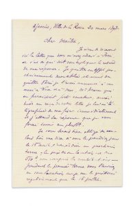MATISSE (Henri) — LETTRE AUTOGRAPHE SIGNÉE À CAMILLE PISSARRO, datée Ajaccio, Villa de la Rocca 30 mars 1898, 2 pages et demie in-8 (205 x 132 mm), sur un bifeuillet, sous chemise demi-maroquin bleu moderne.