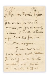 SIGNAC (Paul) — LETTRE AUTOGRAPHE SIGNÉE À CAMILLE PISSARRO, [Bruxelles, 1886 ?], 4 pages petit in-8 (176 x 112 mm), sous chemise demi-maroquin bleu moderne.