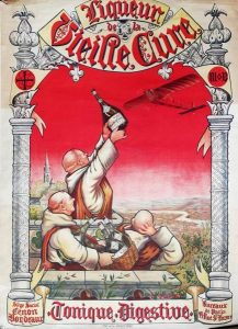 Eugène GAUGUET (Quimper 1872-1943). — Liqueur de la Vieille Cure. Cenon-Bordeaux. Saint-Romain surplombant la ville de Bordeaux.