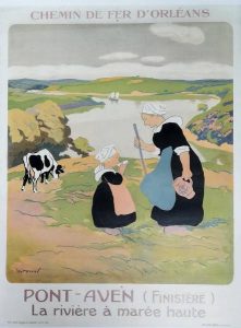 Georges MEUNIER (Paris 1869-1942). — Affiche pour les Chemins de fer d'Orléans. Pont-Aven (Finistère). La rivière à marée haute. — Imp. Chaix, Paris. 1914.