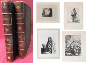 ALBUM REMBRANDT. — Réunion de 92 gravures de Rembrandt, contrecollées et montées sur onglets, dans deux forts volumes in folio reliés en demi-basane à coins, comportant quelques épidermures.