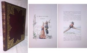 [Edouard de BEAUMONT] — Charles PERRAULT. — Barbe-Bleue et la Belle au Bois Dormant. Paris, Boussod, Valadon et Cie, 1887, in-folio relié plein maroquin bordeaux orné sur les plats d'un riche décor rocaille doré, d'encadrement, accompagné de...