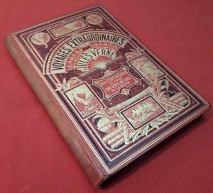Jules VERNE. — Les Tribulations d'un Chinois en Chine. — Cinq cents millions de la Bégum. — Les Révoltés du Bounty. — Paris, Bibliothèque d'Education et de Récréation J. Hetzel, sd. (1879), in-4 relié plein cartonnage Hetzel rouge aux...
