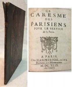 [ANONYME]. — Le Caresme des Parisiens pour le service de la Patrie. — Paris, Petrinal, 1649, relié demi-basane usagée, 8 pages, mouillures.