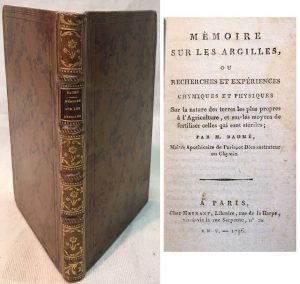 Antoine BAUME. — Mémoire sur les argilles ou recherches et expériences chymiques et physiques sur la nature des terres les plus propres à l'agriculture et sur les moyens de fertiliser celles qui sont stériles. Paris, Meurant, An V (1796), in-16...