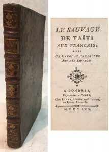 Nicolas BRICAIRE DE LA DIXMERIE. — Le Sauvage de Taïti aux Francais. — London et Paris, Le Jay, 1770, in-12 relié plein veau marbré, dos à nerfs orné, mors légèrement fendu.