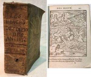 Vincenzo CARTARI. — Les Images des Dieux des Anciens, contenans les idoles, coustumes, ceremonies & autres choses appartenans à la Religion des payens. Traduction d'Antoine du VERDIER. — Lyon, Frellon, 1623, in-8 relié en plein vélin souple,...