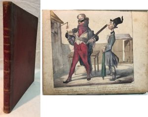 Honoré DAUMIER. — Les Cent et Un Robert Macaire. — Réunion de 75 des 101 planches de l'édition de Paris, chez Aubert, de 1839. Les planches lithographiées sont en couleurs et gommées.