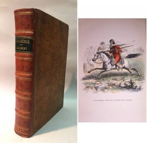 Léon GALIBERT. — L’Algérie ancienne et moderne depuis les premiers établissements des Carthaginois jusqu’à la prise de la Smalah d’Abd-El-Kader. — Paris, Furne, 1844, in-4 relié pleine basane restaurée, dos à nerfs, ornés de filets....