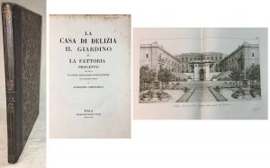 Alessandro GHERARDESCA. — La Casa di Delizia, il Giardino e la Fattoria progetto seguito da diverse esercitazioni architettoniche del medesimo genere. — Pisa, Nistri, 1826, in-folio relié demi-chagrin à coins, dos lisse orné, 23 pages suivies...