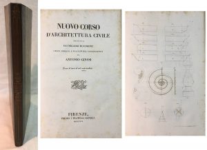 Antonio GINESI. — Nuovo corso di architettura civile dedotta dai migliori documenti greci, latini, e italiani del Cinquecento. — Firenze, Batelli, 1827, in-4 relié demi-maroquin à coins, dos lisse orné de filets.