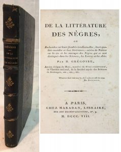 Henri GREGOIRE. — De la littérature des nègres ou Recherches sur leurs facultés intellectuelles, leurs qualités morales et leur littérature ; suivies de notices sur la vie et les ouvrages des nègres qui se sont distingués dans les sciences,...