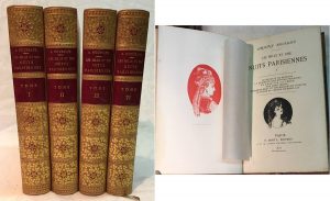 Arsène HOUSSAYE. — Les Mille et Une Nuits parisiennes. — Paris, Dentu, 1875, 4 volumes in-8 reliés demi-basane tabac à coins signés de Hedberg à Stockholm, dos richement ornés, têtes dorées, couvertures conservées.