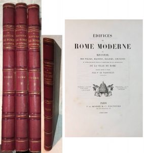 Paul LETAROUILLY. — Édifices de Rome moderne ou Recueil des palais, maisons, églises, couvents, et autres monuments publiques et particuliers de la ville de Rome les plus remarquables. — Paris, Morel, 1868-1874, un volume de texte in-4 et 3...