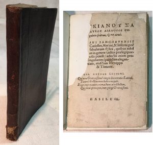 LUCIANUS de Samosate. — Loukianou Hapanta. Luciani Samosatensis opera, quae Graece extant, omnia, in duos tomos concinne digesta, quorum elenchos suo quenque loco reperies. Basileae, Jean Oporinum, 1545, (8) et 182 pages reliées plein cuir...