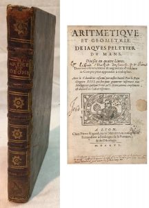 Jacques PELETIER. — Aritmétique et géométrie de Jaques Peletier du Mans divisée en quatre livres. – Dernière édition revue et augmentée d'un livre de compte pour apprendre à multiplier. — Lyon, Rigaud, 1616, in-8 relié plein veau, dos...