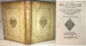 Cette vie de Jules César est écrite par l'historien et marchand génois Stefano Ambrogio Schiappalaria (1515-1581), originaire de Vezzano dans la province de La Spezia, il était sans aucun doute une figure de grande importance pour la nation génoise d'Anvers, comme en témoigne la préparation du magnifique arc de triomphe qui lui fut confié en 1549 à l'occasion de la visite de la ville de Prince Philippe (futur Philippe II).
