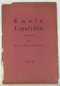Miguel Angel ASTURIAS. — Emulo Lipolidon. Fantomima. Guatemala, 1935, in-8 broché, couverture coupée en deux, 25 pages.