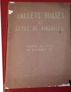 ALBUM DES BALLETS RUSSES de Serge de Diaghilew, pour le Théatre de l'Opéra, le 29 décembre 1927. — Paris, de Brunoff, 1927, broché, couverture légèrement effrangée, illustré des photographies des danseurs dont une par Man Ray représentant...