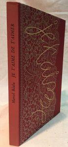 Marcel BÉALU. — Je t'aime de t'aimer. — Compositions, gravures et impressions de Robert Blanchet. — Boulogne, Blanchet, 1987, in-8 en feuilles sous couverture rouge illustrée, à rabat.