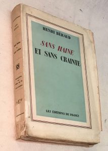 Henri BERAUD. — Sans haine et sans crainte. — Paris, Éditions de France, 1942, in-12 broché, déchirure avec manque au second plat de couverture.
