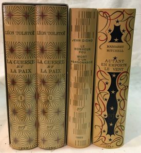 [Cartonnage BONET] — Léon TOLSTOI. — La Guerre et la Paix. — Paris, Gallimard, 1960, in-4 relié plein cartonnage éditeur sous rhodoid, d'après la maquette de Paul Bonet. Édition illustrée de 32 aquarelles hors-texte en couleurs de Edy...