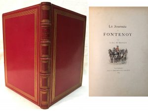 [LALAUZE] Duc Albert de BROGLIE. — La Journée de Fontenoy. Navarre, 1897, in-4 relié plein maroquin rouge signé du Club Bindery et daté de 1899, filets dorés d'encadrement sur les plats, coupes et contreplats, dos à nerfs légèrement foncé...