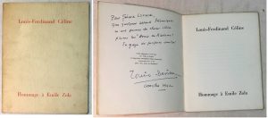 Louis-Ferdinand CÉLINE. — Hommage à Emile Zola. — Texte du discours de l'unique allocution publique de Céline pour la commémoration de la mort de Zola, en 1933. — Imprimé par l'Imprimerie du "Génitron", cette plaquette de 14 pages non...