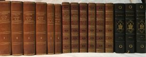 Ensemble de 8 titres en 8 volumes reliés en demi-basane parfois fanées. Cachets humides d'appartenance.