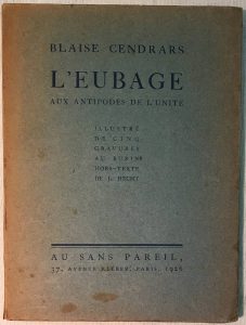Blaise CENDRARS. — L'Eubage aux antipodes de l'unité. — Paris, Au Sans Pareil, 1926, in-12 broché couverture rempliée, légèrement passée et tachée.