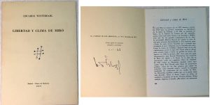 Eduardo WESTERDAHL. — Libertad y clima de Miró. — Palma de Mallorca, Papeles de Son Armadans, nº XXI, 1957, in-12 broché de 12 pages (num. 346-357). — Tiré à 50 exemplaires numérotés et signés.