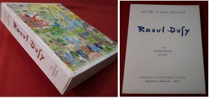 [DUFY] Marcelle OURY. — Lettre à mon peintre. — Raoul Dufy. — Paris, Perrin, 1965, in-4 en feuilles sous jaquette rempliée, chemise et étui, 194 pages illustrées de 27 lithographies, dont 8 à doubles pages, tirées par Mourlot d'après des...