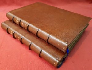 Dos à nerfs, roulettes et filets d'encadrement sur retour de maroquin aux contreplats, double filet sur les coupes, gardes de papier marbré, têtes dorées, couvertures illustrées conservées. Illustrés de 250 compositions de Maurice Leloir, gravées sur bois par J. Huyot.