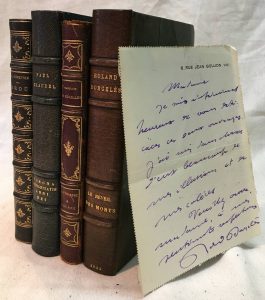 Exemplaire de 1915 sur papier ordinaire, édité à la NRF, comportant un envoi autographe à Madame Paul Dupuy, relié demi-maroquin à coins signé de Blanchetière, couverture et dos conservés, tête dorée.