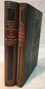 Remy de GOURMONT. — Ensemble de 2 volumes : — Le Chemin de velours - Divertissements. — Paris, Crès, 1923 et 1912, reliés demi-maroquin à coins, signés de Aussourd et Bernasconi, dos mosaïqués de liserés de cuir, couvertures et dos...