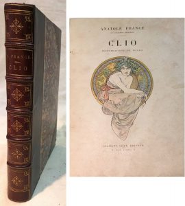 [MUCHA]. Anatole FRANCE. — Clio. — Paris, Calmann-Lévy, 1900, in-8 relié plein veau glacé à coins, dos à nerfs orné, tête dorée, couvertures conservées.