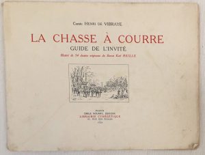 [Karl REILLE] Comte Henry de VIBRAYE. — La Chasse à Courre. Guide de l'invité. — Paris, Nourry, 1929, in-4 oblong broché, couverture illustrée, 45 pages illustrées de 34 dessins originaux du Baron Karl Reille dont 20 hors-texte, en sépia.