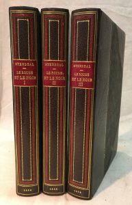 STENDHAL (Henry Beyle, M. de). — Le Rouge et le Noir. — Paris, Conquet, 1884, 3 volumes in-8 reliés demi-maroquin à coins, signés de Semet et Plumelle, dos mosaïqués de liserés de cuir, couvertures et dos conservés, têtes dorées.
