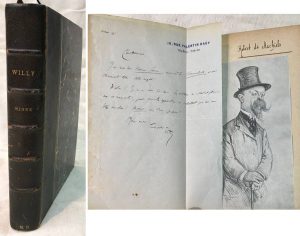 Exemplaire enrichi d'une lettre autographe signée de Willy adressée le 10 novembre 1911 à l'écrivain Robert de Machiels en remerciement de l'envoi de son livre "Victorine Gaurin".