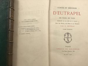 FAIL (Noël du) — Contes et discours d'Eutrapel. — 2 vol. in-8 reliés ½ maroquin vert à coins, dos à nerfs fleuronnés (insolé) tête dorée. — Paris Librairie des Bibliophiles 1875.